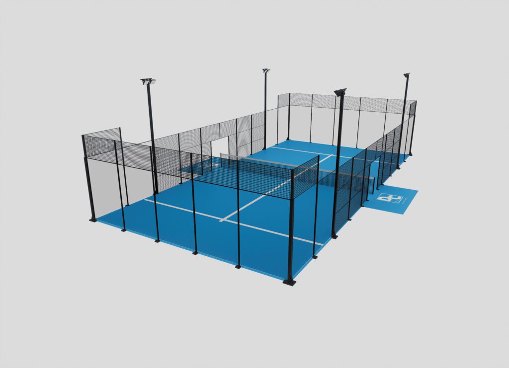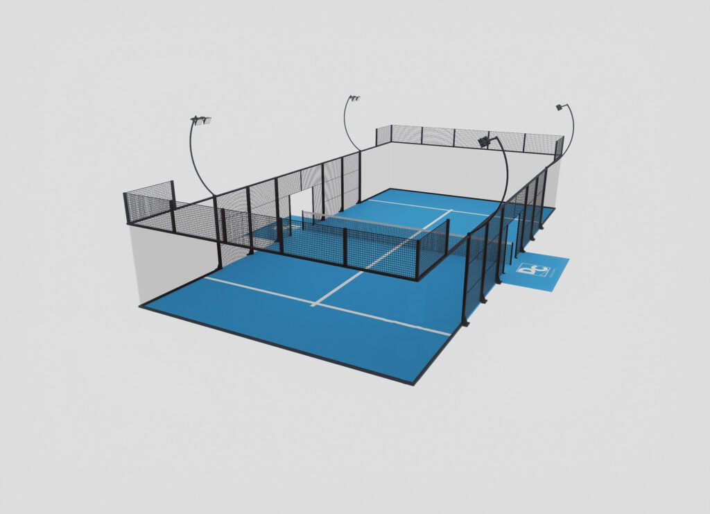 A modern court with minimal structural elements for enhanced visibility. Ideal for clubs and tournaments seeking a sleek, professional look with a premium playing experience.