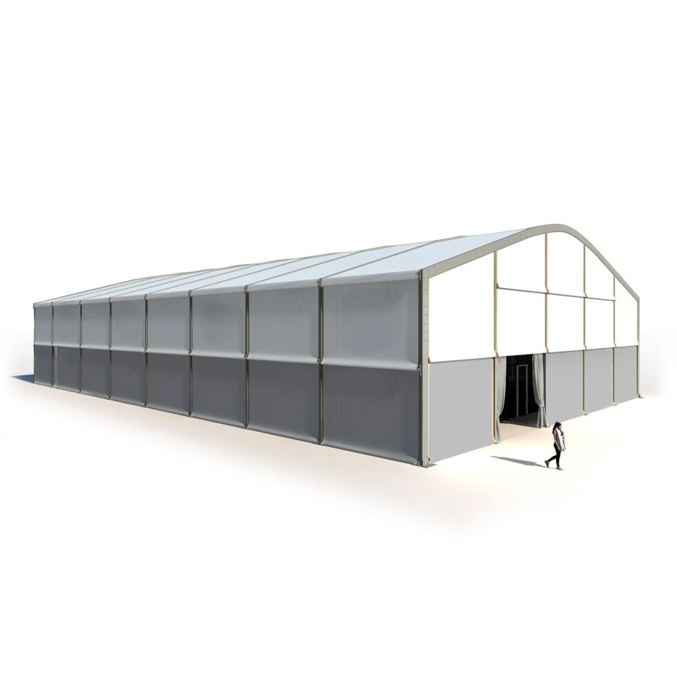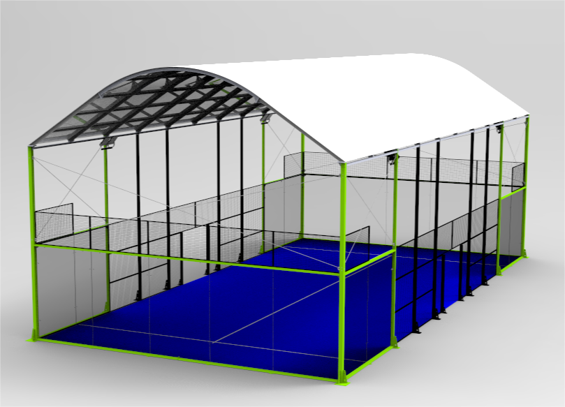 A panoramic court with a protective roof, offering weather resistance while maintaining excellent visibility and a professional design. Ideal for outdoor facilities in various climates.